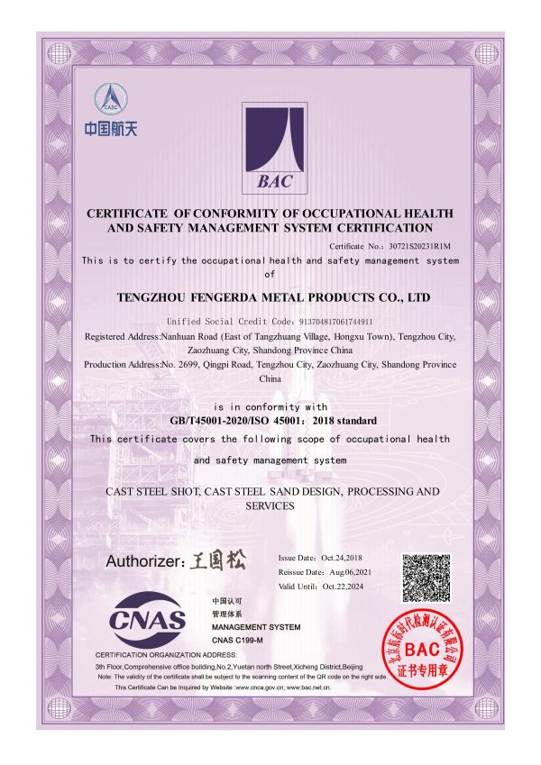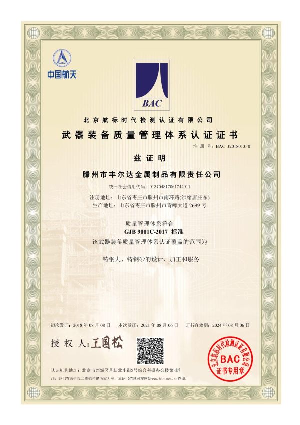 Приверженность компании качеству и соблюдению норм подтверждается наличием у нее полного набора сертификатов, включая GB/T 24001-2016/ISO 14001:2015 по управлению окружающей средой, GJB 9001C-2017, GB/T45001-2020/ISO 45001:2018 по охране труда и технике безопасности и GB/T 19001-2016/ISO 9001:2015 по управлению качеством. Этот обширный портфель сертификатов гарантирует, что Tengzhou Fengerda придерживается самых высоких международных стандартов во всех аспектах своей деятельности.